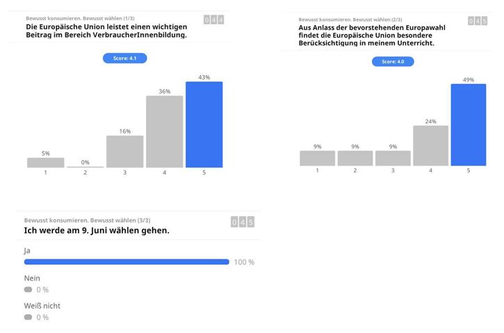 Im Anschluss daran fand eine Fishbowl-Diskussion statt. Das Publikum hatte die Gelegenheit, Platz neben den Podiumsgästen zu nehmen, eigene Statements abzugeben oder Fragen an die Referenten zu stellen. Unter anderem wurden folgende Fragen diskutiert: Wie kann man etwa am Beispiel des EU-Lieferkettengesetzes im Unterricht politisch "neutral" argumentieren? Braucht es im Bereich VerbraucherInnenschutz eine europäische Außenpolitik?