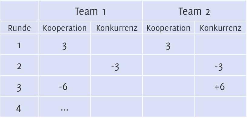 - Nettigkeit: Ein Kooperationsangebot wird in der nächsten Runde erwidert.