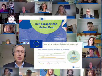 Mehr als 80 SchulleiterInnen, Lehrkräfte und MultiplikatorInnen trafen sich im virtuellen Raum, um mehr über den Aktionsplan des #EuropeanGreenDeal zu erfahren und sich darüber auszutauschen, wie der Umgang mit kontroversen Themen im Unterricht am Beispiel Klimapolitik gelingen kann. Die kleinen technischen "Schmankerl" stellten eine Herausforderung dar, taten aber der Stimmung keinen Abbruch und die Teilnehmenden tauschten sich in den Workshops rege zu unterschiedlichen pädagogischen Angeboten aus.