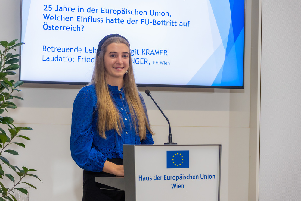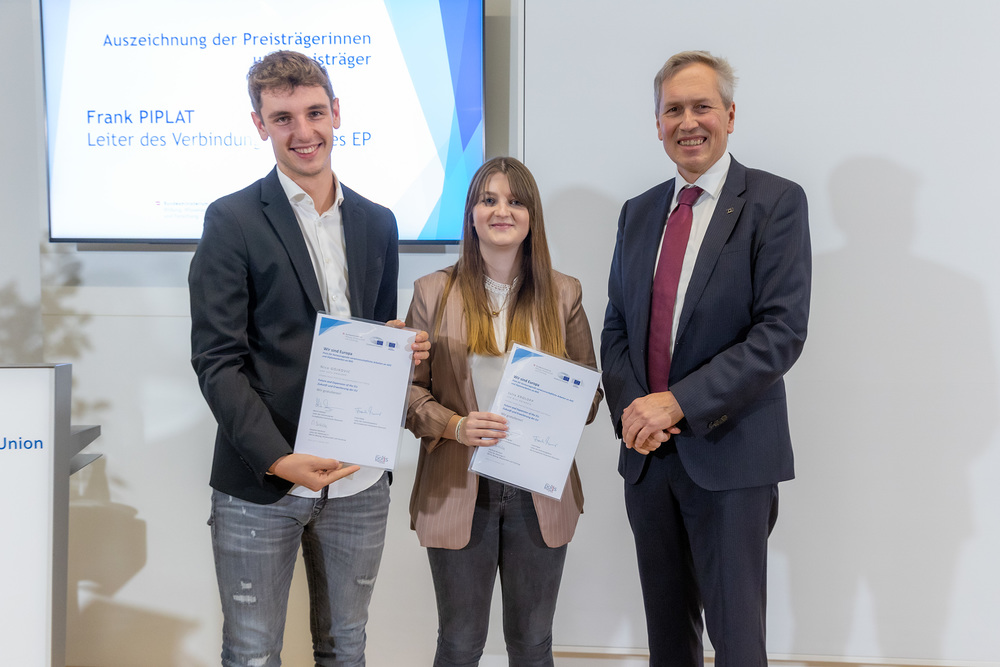 Am Freitag, 21. Oktober 2022 fand im Haus der Europäischen Union in Wien die Verleihungsfeier "Wir sind Europa" für herausragende vorwissenschaftliche Arbeiten an AHS und Diplomarbeiten an BHS statt. Sechs Arbeiten wurden prämiert. Wir gratulieren herzlich den PreisträgerInnen.